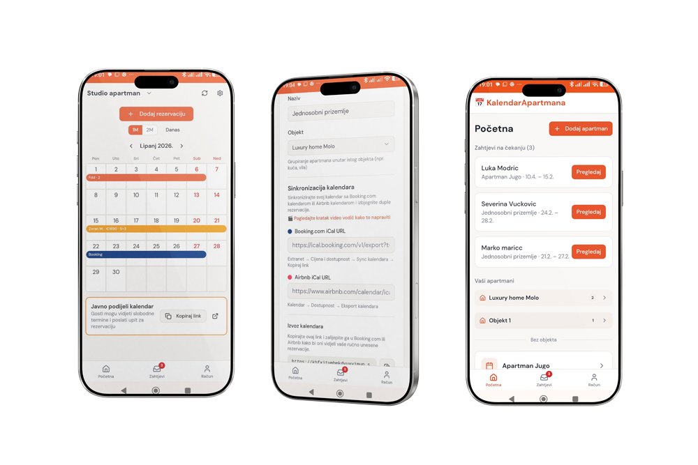 Najjednostavniji kalendar za iznajmljivače u Hrvatskoj. Sinkroniziraj Booking, Airbnb i sebe.